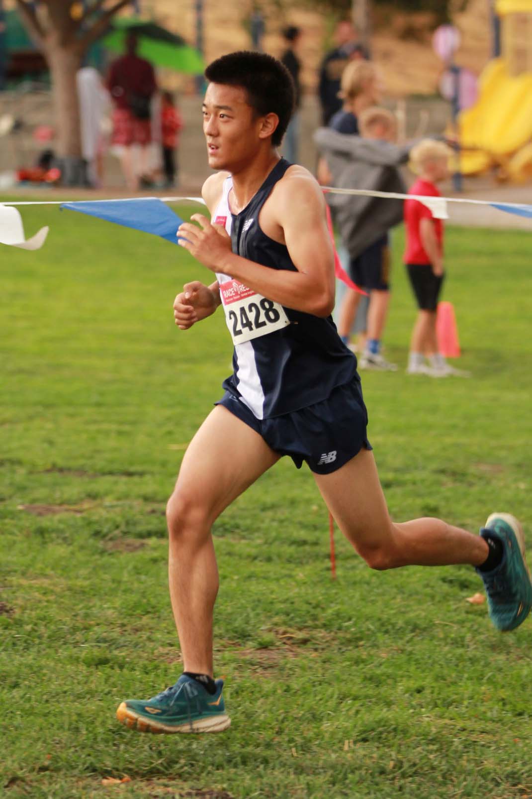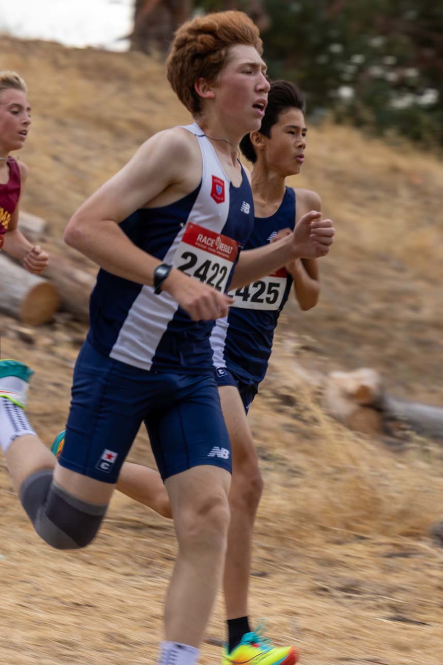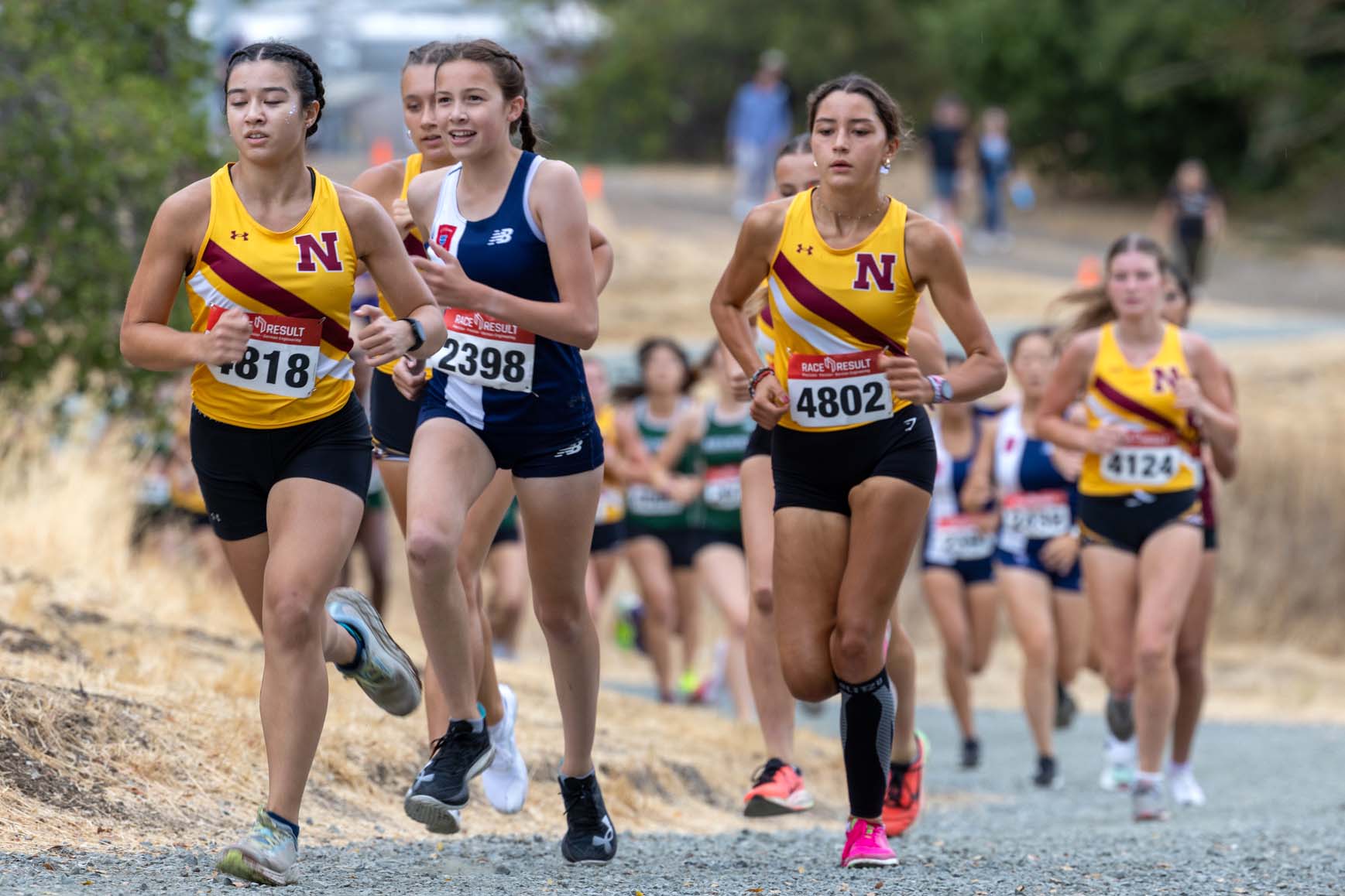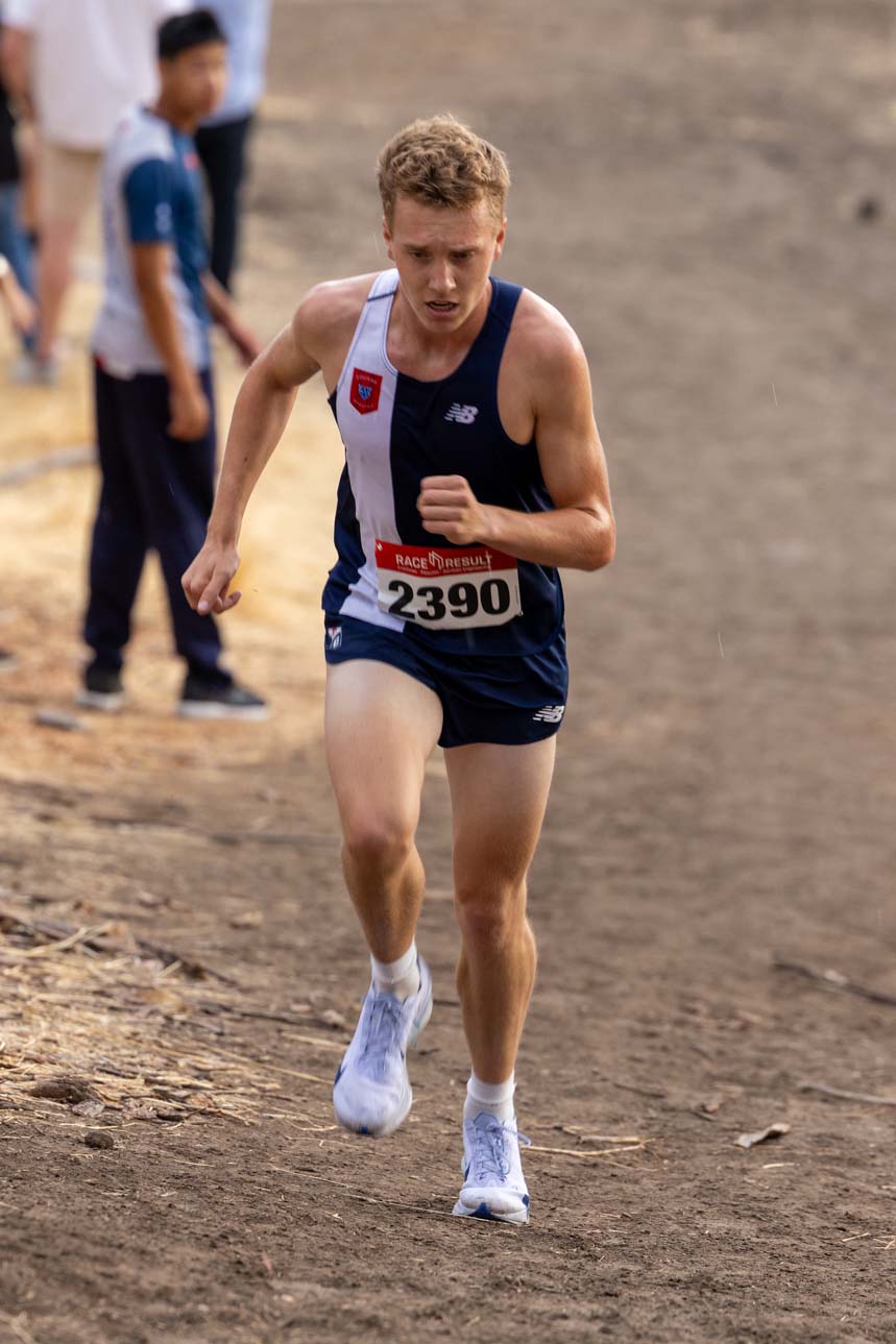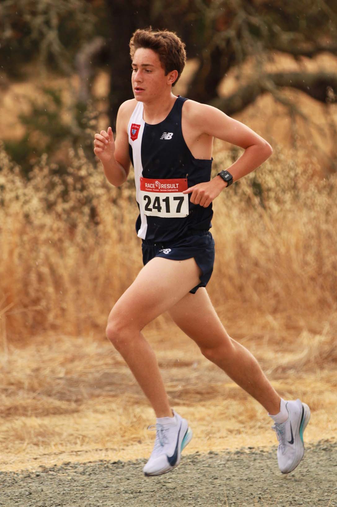 Boys Set HVP Course Record; Broncos End Girls' 11-year Streak at DAL Center Meet An abrupt turn in the weather offered unique and advantageous conditions for all competitors at Wednesday's Diablo Athletic League center meet. Cloudy skies brought light rain throughout the afternoon, lowering temperatures and tamping down the normally dusty trails through Hidden Valley Park. The meet began with a promising showing from the frosh soph girls, who managed to remain undefeated for the season. Adeline Travis (29) assumed the front-running role for the Cougars, winning the race with a personal best of 13:35. Backing up the freshman were Rana Beeson (28), Vasy Predatko (28), and Katherine Vonderbrink (28), who each finished among the top 10 individuals. The other non-varsity team win came from the junior varsity boys, who were buoyed by a 28-second PR from Matteo Marchetti (27). While the frosh soph boys suffered from a short-handed lineup due to injury and illness, as well as a few lapses in focus through the finishing stretch, they did manage to come within 1 point of the winning Las Lomas squad. Jonah Thompson (28) provided the low stick for the Cougars with an individual victory. Placing 4 scorers in the top 10, the junior varsity girls claimed runner-up honors behind a deep Northgate squad. Caroline Galindo (28) came through with a clutch 5th-place individual finish, passing several competitors over the final mile. The Broncos continued their impressive early-season momentum by handing the varsity girls their 1st league loss in over a decade. While Jillian Randolph (28) and Amalia Contreras (27) gave Campolindo an advantage up front, their squad could not overcome the strong performances from Northgate's 3-through-6 quartet, who finished within 15 seconds of each other and all ahead of the Cougars' #4 scorer. Concluding on a considerable high note, the varsity boys took full advantage of the cooler-than-expected conditions to unleash the greatest team performance in the history of the course. Through 2 miles, the Cougars held the top 7 places in the race. While Caden Ehrhorn (28) ran unchallenged at the front from wire to wire, it was Nikola Van Delft (27) who pressed relentlessly through the middle miles to inspire an historic effort from his teammates. By the time the front of the race crossed over the double bridges and began the ascent of Finale Hill, College Park's Grayson Langford and Brennon Tennant along with Berean Christian's Samuel Ruiz had finally broken into the top 10, foiling what otherwise would have been the 1st perfect-score-sweep of a varsity boys' race in league history. With 4 athletes crossing the finish in under 16 minutes and a scoring pack margin of just 35 seconds, Campolindo eclipsed the previous team-time record set in 2011 by 85 seconds. Carter Cook (27) lowered his career best on the 3-mile course by an astounding 93 seconds, while Samuel Hearn dropped 1 of the all-time greatest HVP 3-mile debuts to finish 6th in 16:05.