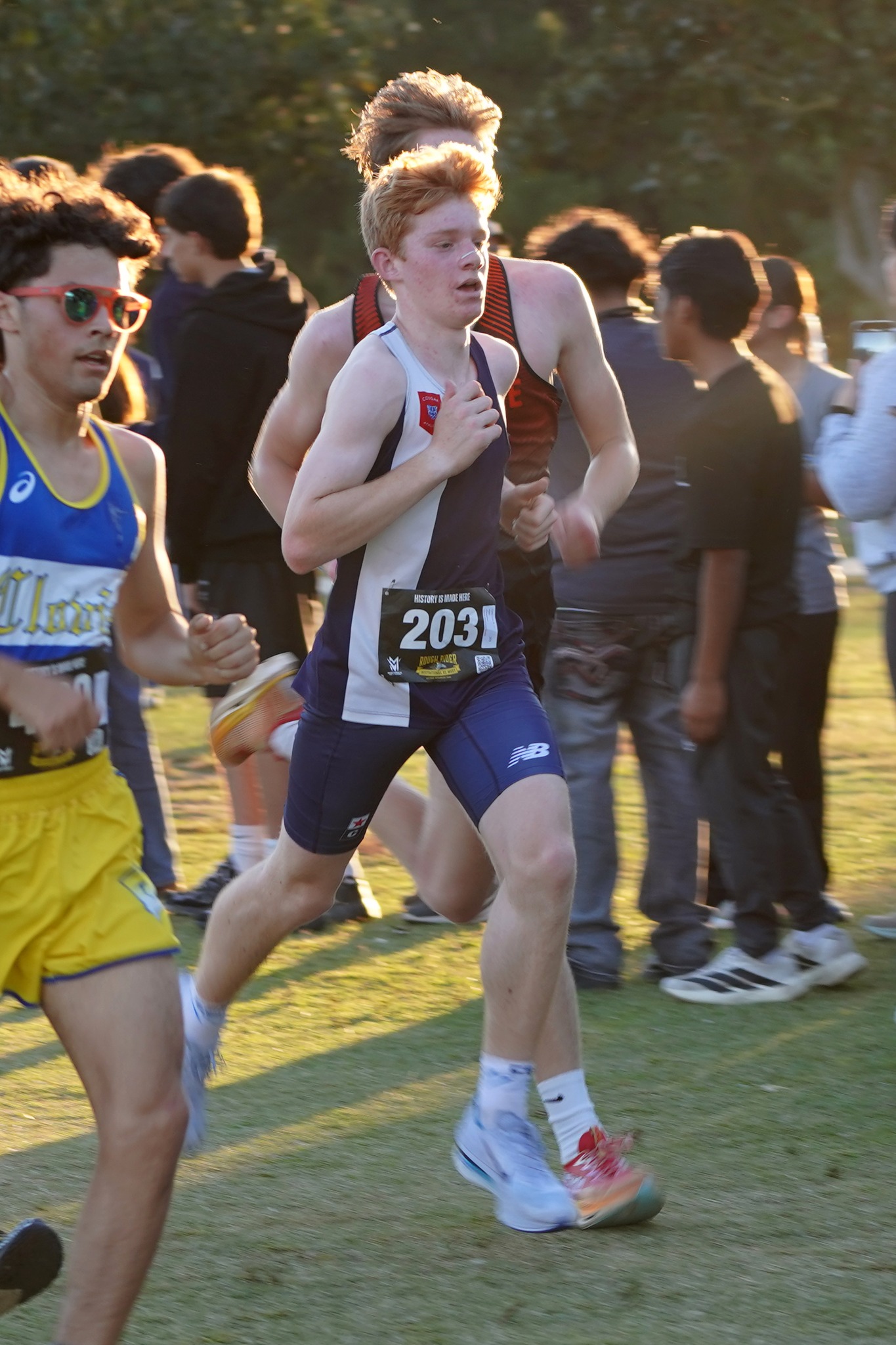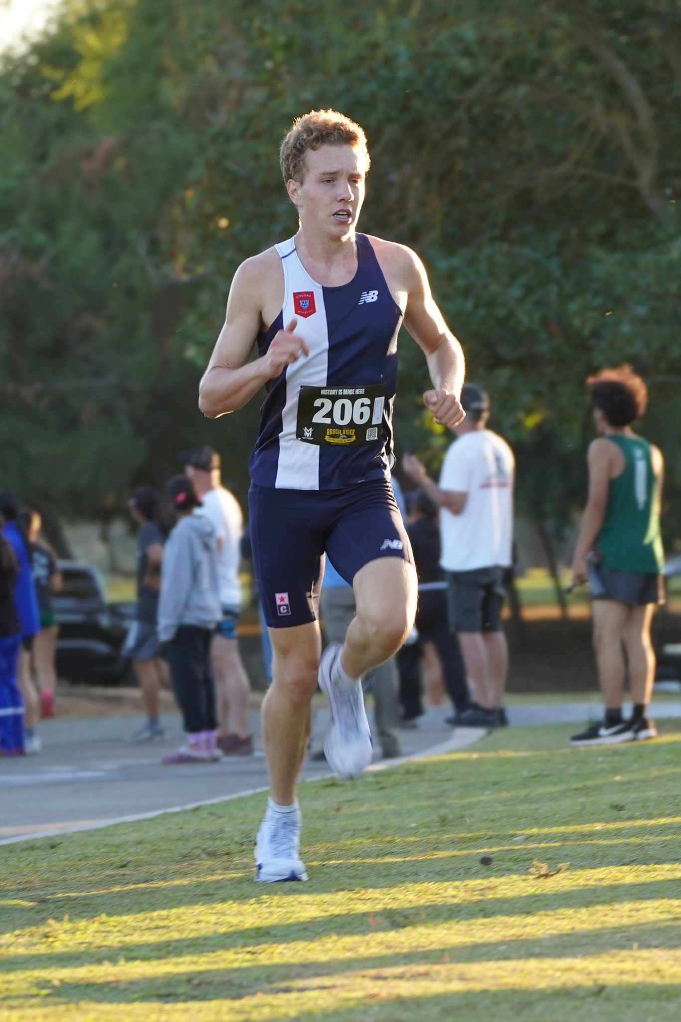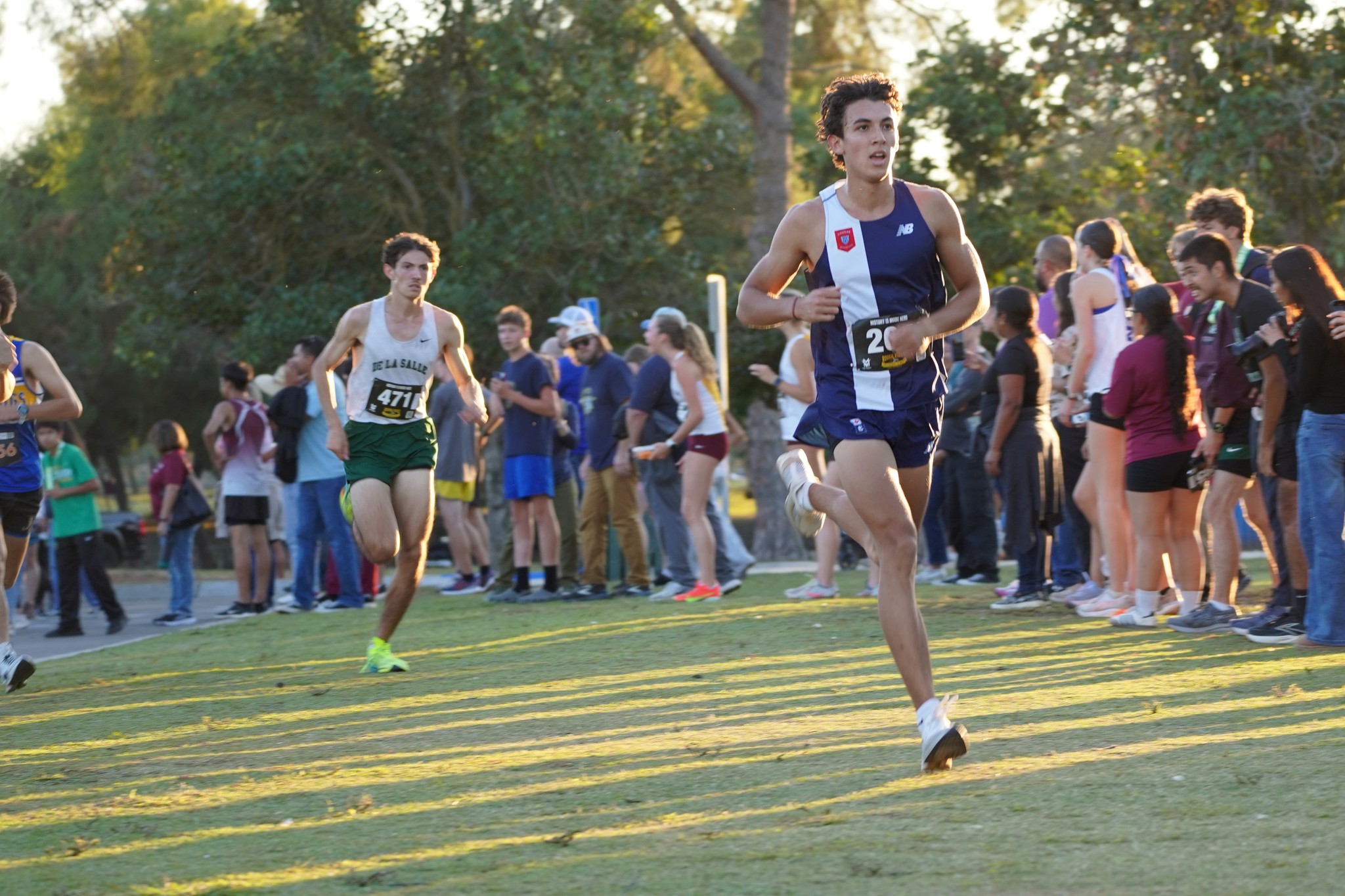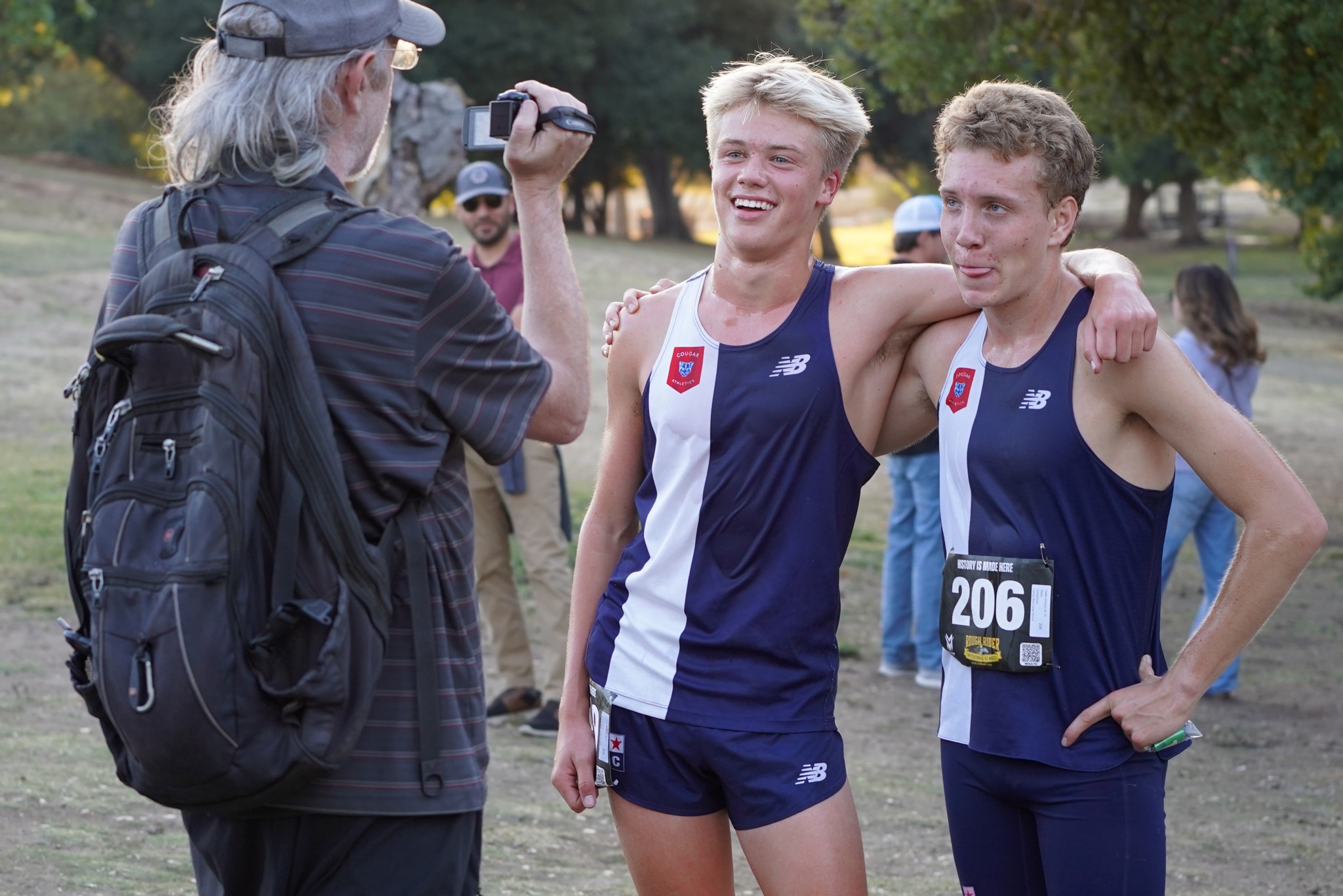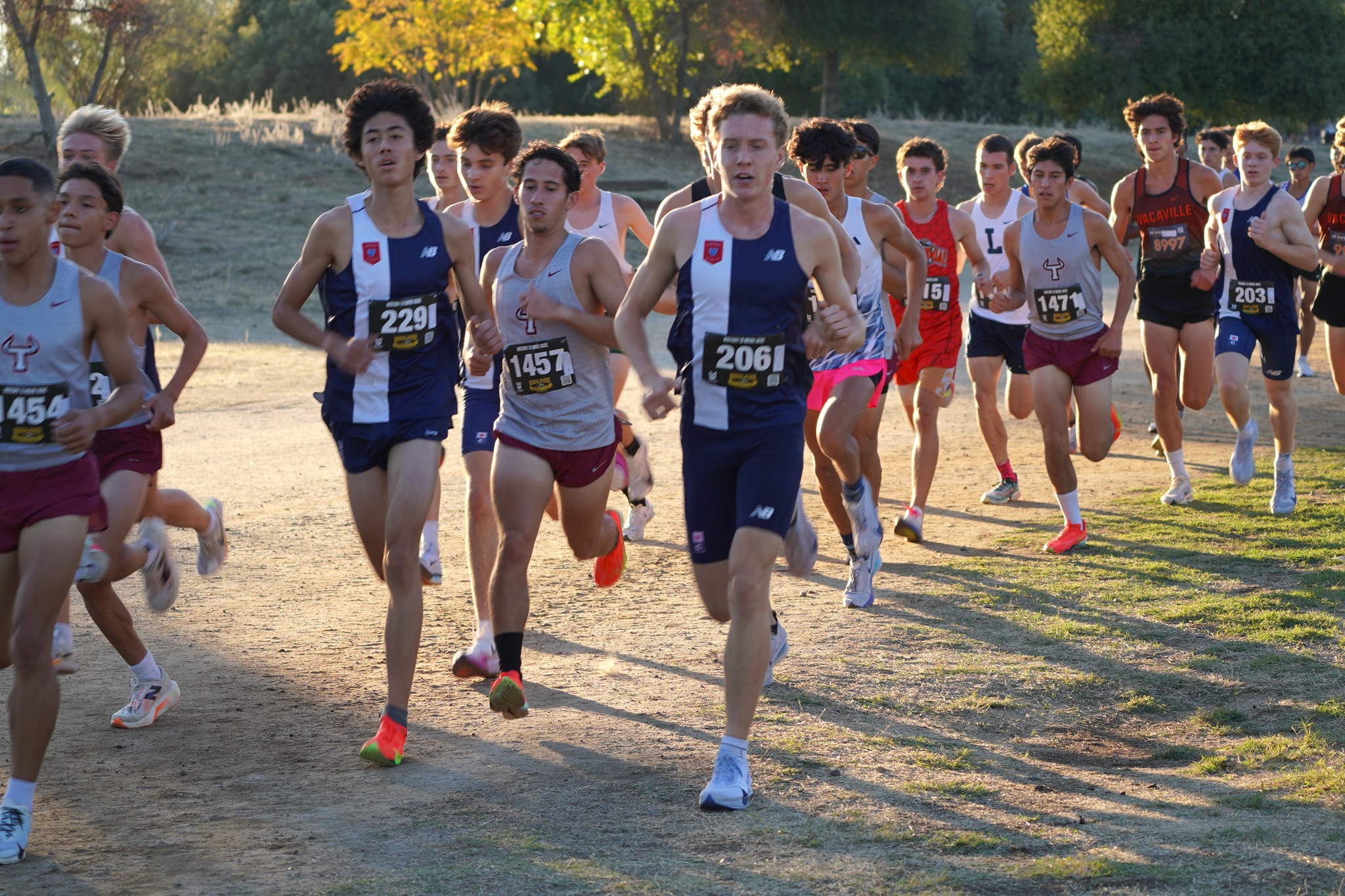 Boys Reclaim NCS Team Record on State Course; Gregory Debuts as Top Finisher With the return of Clark Gregory (27) and Gavin Gunn (27), along with the debut of Chase Nickens (28), the already impressive season for the defending state champions found a new gear at Friday's Rough Rider Invitational hosted on the historic Woodward Park 5k course. Facing off against 2 of California's top-ranked squads, Vacaville and Matilda Torres, the Cougars proved themselves worthy of their own early-season accolades with an emphatic 40-point victory in the varsity large-school division. While Gregory and Caden Ehrhorn (28) provided the lowest sticks with 2nd and 3rd-place finishes, it was the trio of Gunn, Nikola Van Delft (27), and Jack Durden (27) crossing the line within 5 seconds of one another in 11th, 13th, and 14th place that propelled the squad to the NCS team-time record of 77:30, overtaking the mark set by Dublin High School a decade earlier. The jaw-dropping rate of improvement among the varsity boys continued as Taiyo Chiba (27) dropped his best time on the course by over 2 minutes. Van Delft improved by 1:45 and Samuel Hearn (27), who also broke the 16-minute barrier, improved by 1:34. The girls' competition featured a nearly 2-minute improvement by Sophie Lechner (27), who became the squad's #3 scorer. Rana Beeson (28) finished 4th for the team in her 1st varsity appearance.