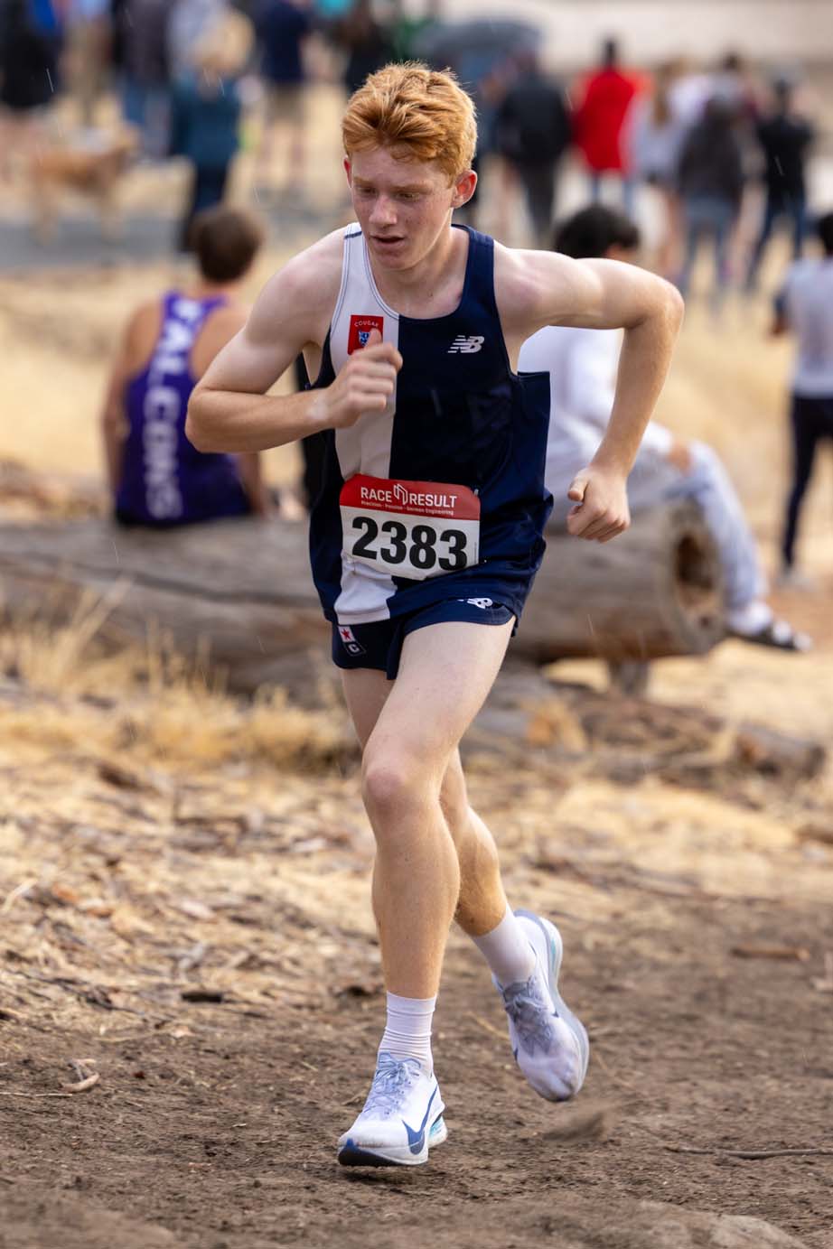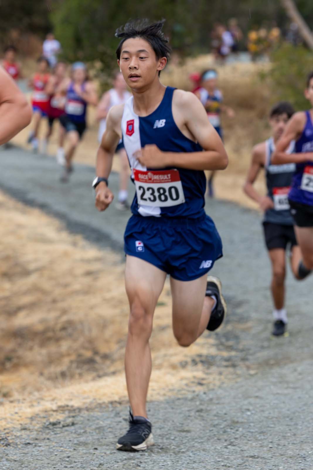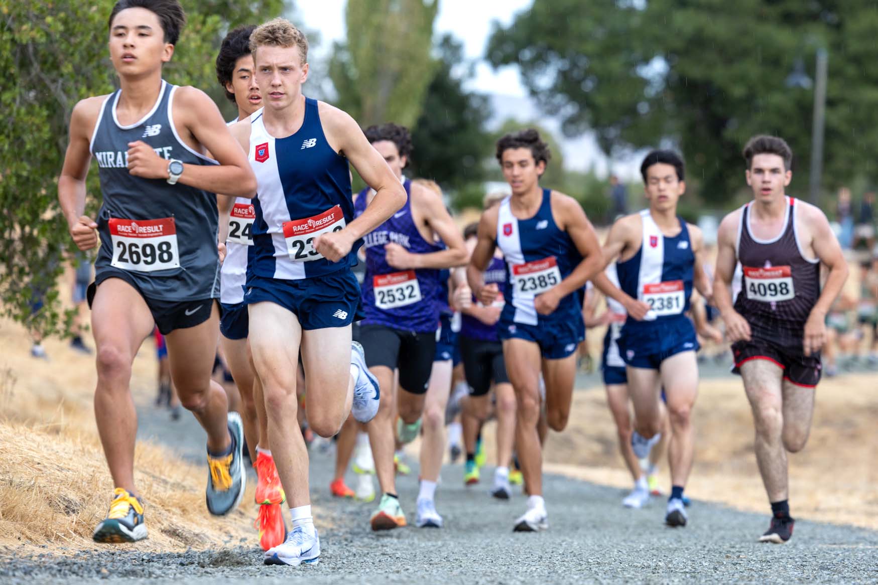 Boys Set HVP Course Record; Broncos End Girls' 11-year Streak at DAL Center Meet An abrupt turn in the weather offered unique and advantageous conditions for all competitors at Wednesday's Diablo Athletic League center meet. Cloudy skies brought light rain throughout the afternoon, lowering temperatures and tamping down the normally dusty trails through Hidden Valley Park. The meet began with a promising showing from the frosh soph girls, who managed to remain undefeated for the season. Adeline Travis (29) assumed the front-running role for the Cougars, winning the race with a personal best of 13:35. Backing up the freshman were Rana Beeson (28), Vasy Predatko (28), and Katherine Vonderbrink (28), who each finished among the top 10 individuals. The other non-varsity team win came from the junior varsity boys, who were buoyed by a 28-second PR from Matteo Marchetti (27). While the frosh soph boys suffered from a short-handed lineup due to injury and illness, as well as a few lapses in focus through the finishing stretch, they did manage to come within 1 point of the winning Las Lomas squad. Jonah Thompson (28) provided the low stick for the Cougars with an individual victory. Placing 4 scorers in the top 10, the junior varsity girls claimed runner-up honors behind a deep Northgate squad. Caroline Galindo (28) came through with a clutch 5th-place individual finish, passing several competitors over the final mile. The Broncos continued their impressive early-season momentum by handing the varsity girls their 1st league loss in over a decade. While Jillian Randolph (28) and Amalia Contreras (27) gave Campolindo an advantage up front, their squad could not overcome the strong performances from Northgate's 3-through-6 quartet, who finished within 15 seconds of each other and all ahead of the Cougars' #4 scorer. Concluding on a considerable high note, the varsity boys took full advantage of the cooler-than-expected conditions to unleash the greatest team performance in the history of the course. Through 2 miles, the Cougars held the top 7 places in the race. While Caden Ehrhorn (28) ran unchallenged at the front from wire to wire, it was Nikola Van Delft (27) who pressed relentlessly through the middle miles to inspire an historic effort from his teammates. By the time the front of the race crossed over the double bridges and began the ascent of Finale Hill, College Park's Grayson Langford and Brennon Tennant along with Berean Christian's Samuel Ruiz had finally broken into the top 10, foiling what otherwise would have been the 1st perfect-score-sweep of a varsity boys' race in league history. With 4 athletes crossing the finish in under 16 minutes and a scoring pack margin of just 35 seconds, Campolindo eclipsed the previous team-time record set in 2011 by 85 seconds. Carter Cook (27) lowered his career best on the 3-mile course by an astounding 93 seconds, while Samuel Hearn dropped 1 of the all-time greatest HVP 3-mile debuts to finish 6th in 16:05.