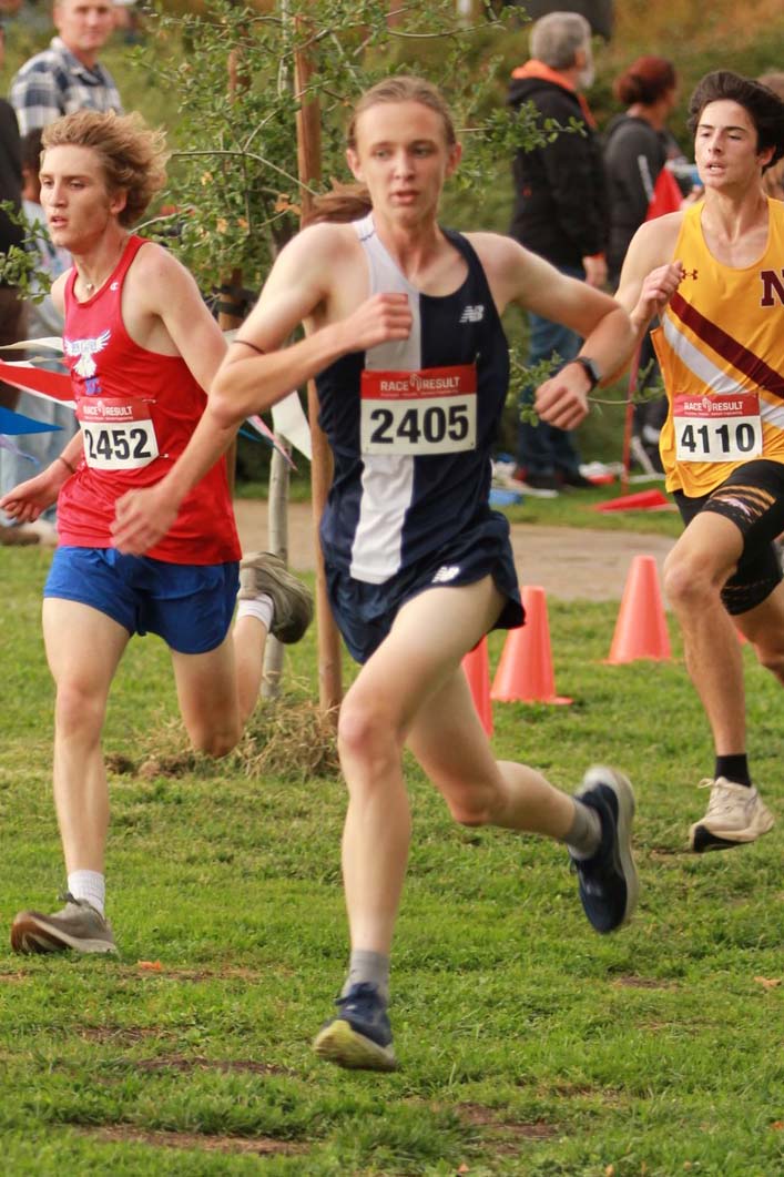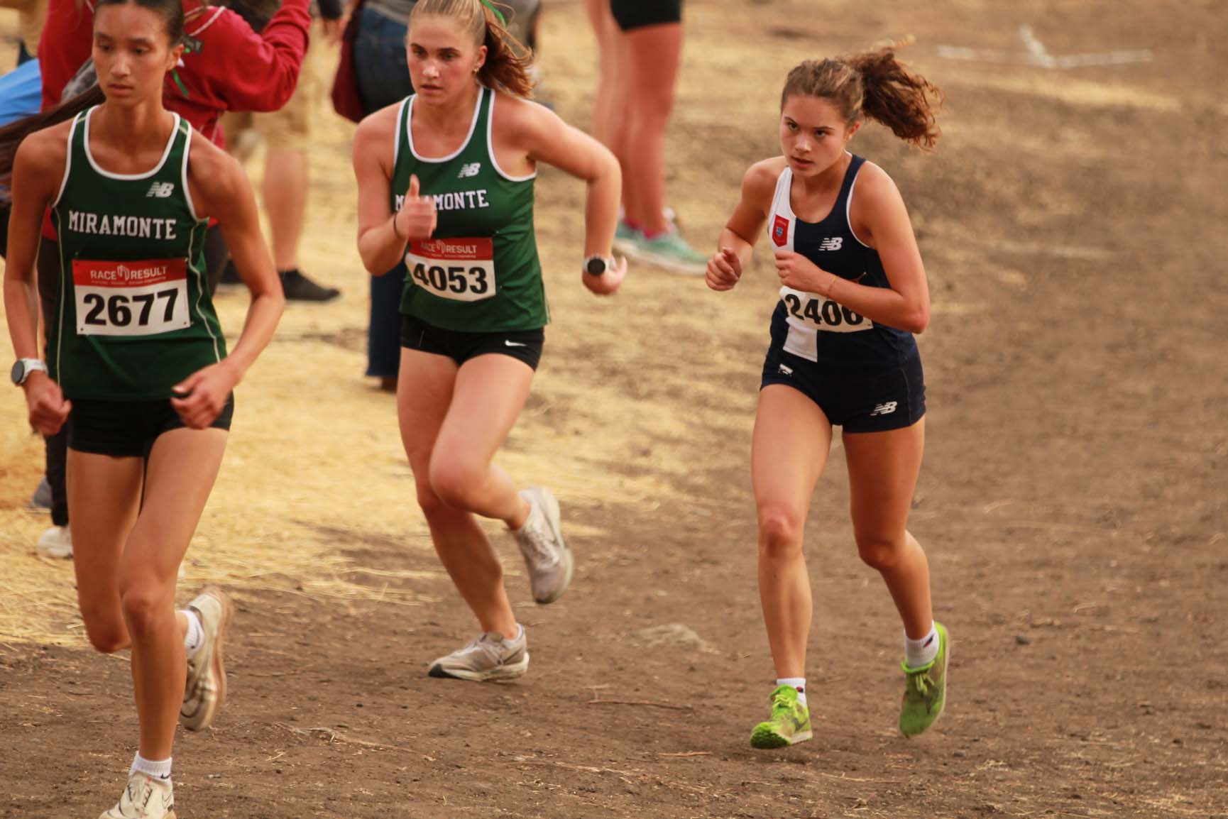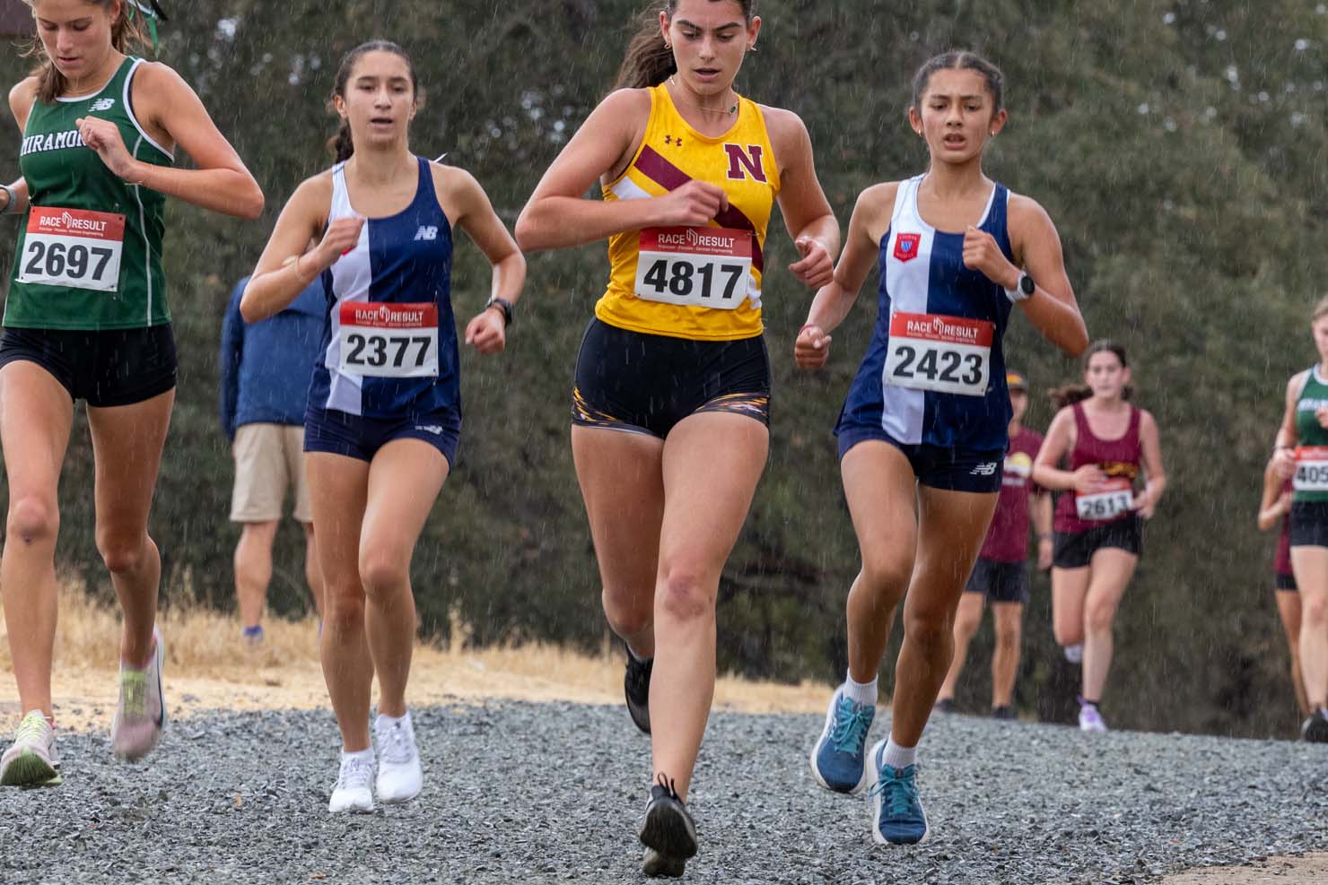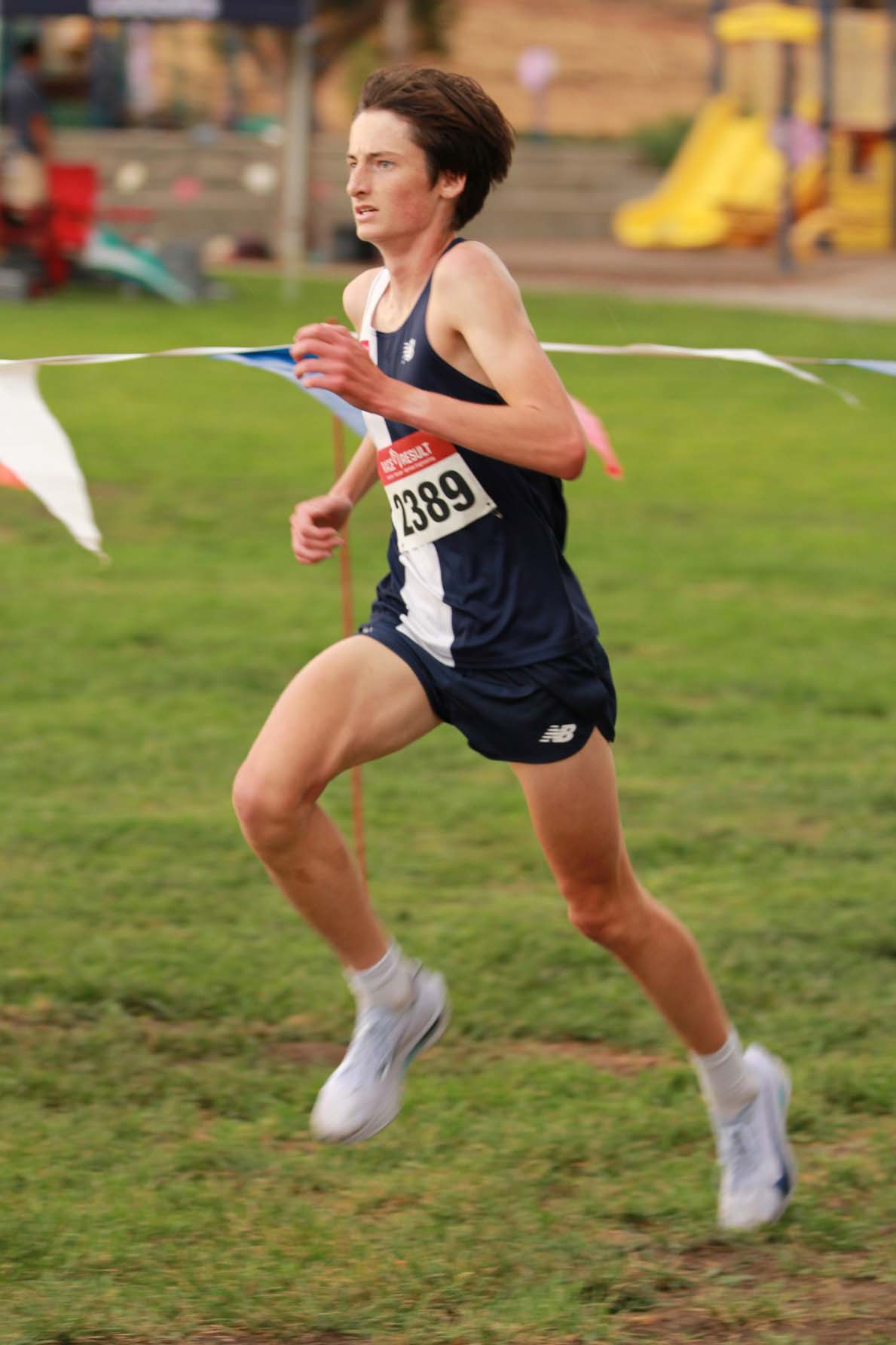 Boys Set HVP Course Record; Broncos End Girls' 11-year Streak at DAL Center Meet An abrupt turn in the weather offered unique and advantageous conditions for all competitors at Wednesday's Diablo Athletic League center meet. Cloudy skies brought light rain throughout the afternoon, lowering temperatures and tamping down the normally dusty trails through Hidden Valley Park. The meet began with a promising showing from the frosh soph girls, who managed to remain undefeated for the season. Adeline Travis (29) assumed the front-running role for the Cougars, winning the race with a personal best of 13:35. Backing up the freshman were Rana Beeson (28), Vasy Predatko (28), and Katherine Vonderbrink (28), who each finished among the top 10 individuals. The other non-varsity team win came from the junior varsity boys, who were buoyed by a 28-second PR from Matteo Marchetti (27). While the frosh soph boys suffered from a short-handed lineup due to injury and illness, as well as a few lapses in focus through the finishing stretch, they did manage to come within 1 point of the winning Las Lomas squad. Jonah Thompson (28) provided the low stick for the Cougars with an individual victory. Placing 4 scorers in the top 10, the junior varsity girls claimed runner-up honors behind a deep Northgate squad. Caroline Galindo (28) came through with a clutch 5th-place individual finish, passing several competitors over the final mile. The Broncos continued their impressive early-season momentum by handing the varsity girls their 1st league loss in over a decade. While Jillian Randolph (28) and Amalia Contreras (27) gave Campolindo an advantage up front, their squad could not overcome the strong performances from Northgate's 3-through-6 quartet, who finished within 15 seconds of each other and all ahead of the Cougars' #4 scorer. Concluding on a considerable high note, the varsity boys took full advantage of the cooler-than-expected conditions to unleash the greatest team performance in the history of the course. Through 2 miles, the Cougars held the top 7 places in the race. While Caden Ehrhorn (28) ran unchallenged at the front from wire to wire, it was Nikola Van Delft (27) who pressed relentlessly through the middle miles to inspire an historic effort from his teammates. By the time the front of the race crossed over the double bridges and began the ascent of Finale Hill, College Park's Grayson Langford and Brennon Tennant along with Berean Christian's Samuel Ruiz had finally broken into the top 10, foiling what otherwise would have been the 1st perfect-score-sweep of a varsity boys' race in league history. With 4 athletes crossing the finish in under 16 minutes and a scoring pack margin of just 35 seconds, Campolindo eclipsed the previous team-time record set in 2011 by 85 seconds. Carter Cook (27) lowered his career best on the 3-mile course by an astounding 93 seconds, while Samuel Hearn dropped 1 of the all-time greatest HVP 3-mile debuts to finish 6th in 16:05.