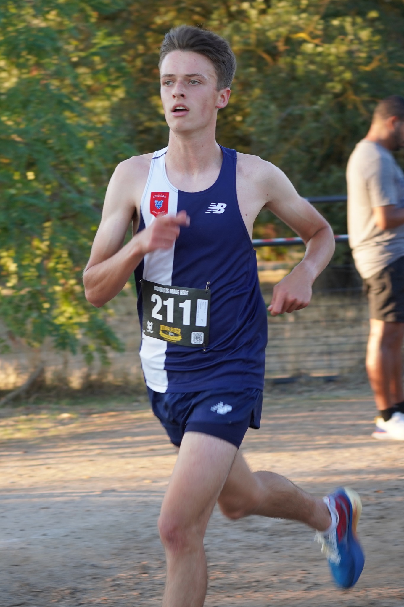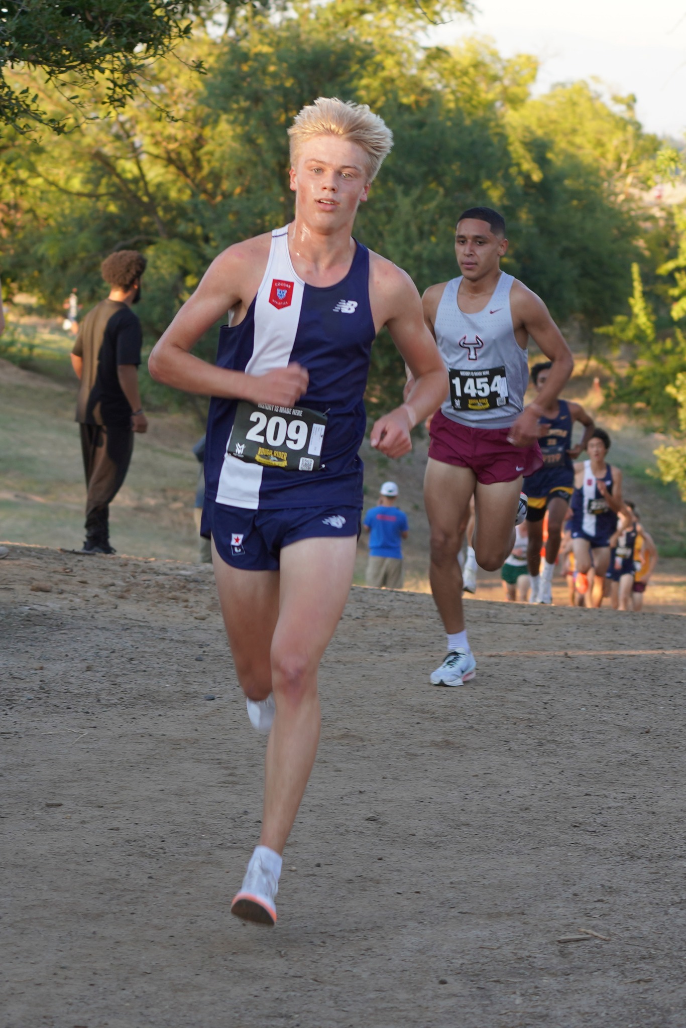 Boys Reclaim NCS Team Record on State Course; Gregory Debuts as Top Finisher With the return of Clark Gregory (27) and Gavin Gunn (27), along with the debut of Chase Nickens (28), the already impressive season for the defending state champions found a new gear at Friday's Rough Rider Invitational hosted on the historic Woodward Park 5k course. Facing off against 2 of California's top-ranked squads, Vacaville and Matilda Torres, the Cougars proved themselves worthy of their own early-season accolades with an emphatic 40-point victory in the varsity large-school division. While Gregory and Caden Ehrhorn (28) provided the lowest sticks with 2nd and 3rd-place finishes, it was the trio of Gunn, Nikola Van Delft (27), and Jack Durden (27) crossing the line within 5 seconds of one another in 11th, 13th, and 14th place that propelled the squad to the NCS team-time record of 77:30, overtaking the mark set by Dublin High School a decade earlier. The jaw-dropping rate of improvement among the varsity boys continued as Taiyo Chiba (27) dropped his best time on the course by over 2 minutes. Van Delft improved by 1:45 and Samuel Hearn (27), who also broke the 16-minute barrier, improved by 1:34. The girls' competition featured a nearly 2-minute improvement by Sophie Lechner (27), who became the squad's #3 scorer. Rana Beeson (28) finished 4th for the team in her 1st varsity appearance.
